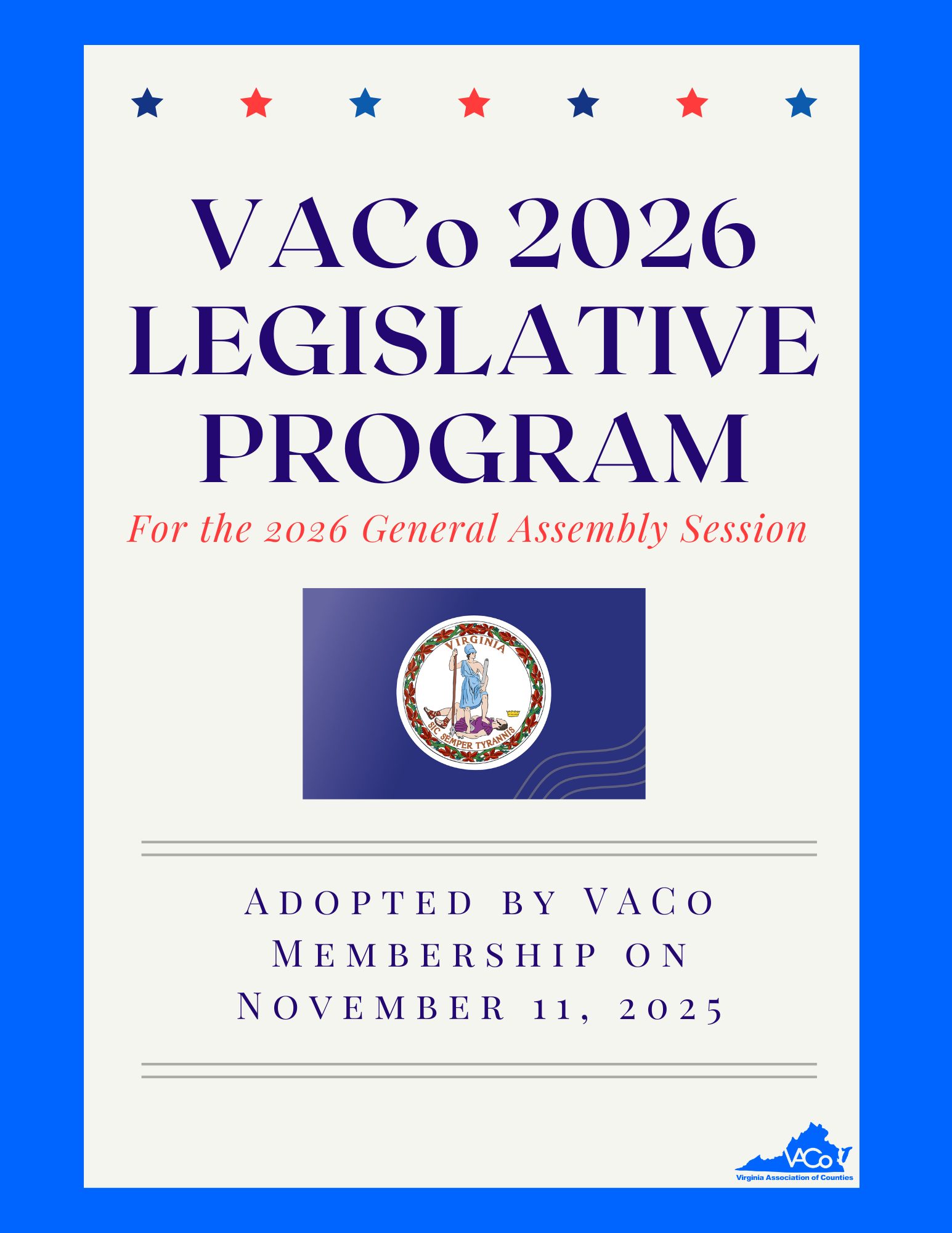 VACo has released its 2026 Legislative Program, which was adopted by membership on November 11 at the Annual Business Meeting. The 2026 Legislative Program was drafted through VACo’s steering committee process. The document has a host