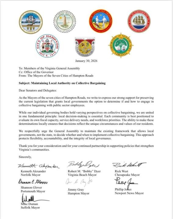 - “Letter from Mayors of Seven Cities of Hampton Roads”