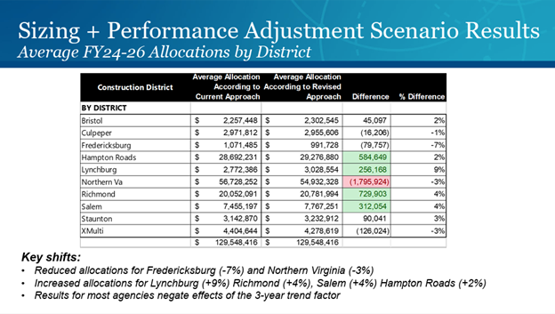 This is an estimate of the funding results by VDOT construction district for FY24-26: