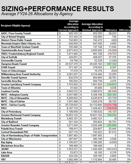 DRPT states that the recommended changes simplify the formula by removing the trend adjustment and further emphasize performance-based allocation.